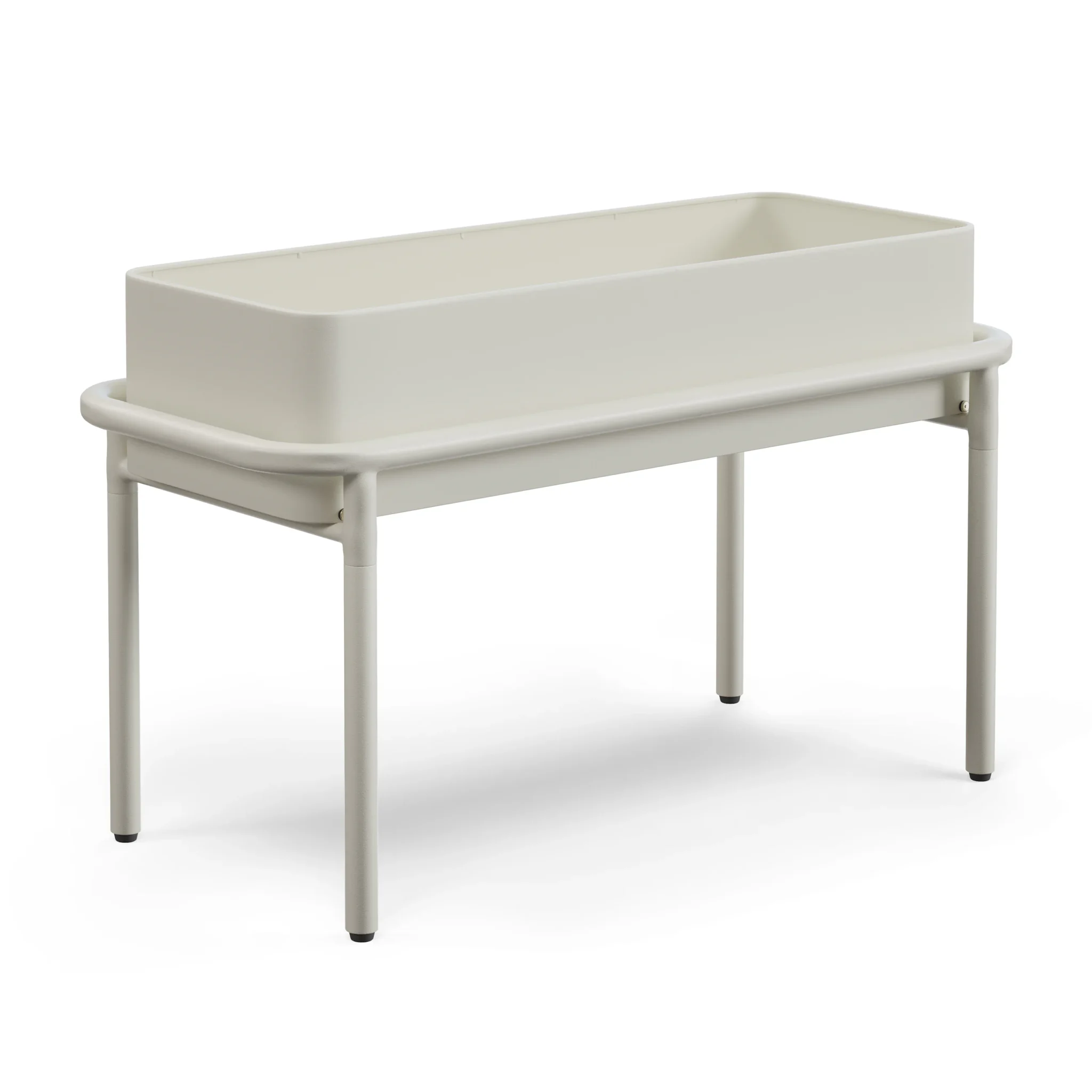 Crafted from powder-coated steel, this sleek planter offers durability without sacrificing design. The soft taupe finish blends seamlessly with both contemporary and classic outdoor setups, while its low, horizontal shape is perfect for creating serene botanical vignettes on patios, balconies, or tabletops.
